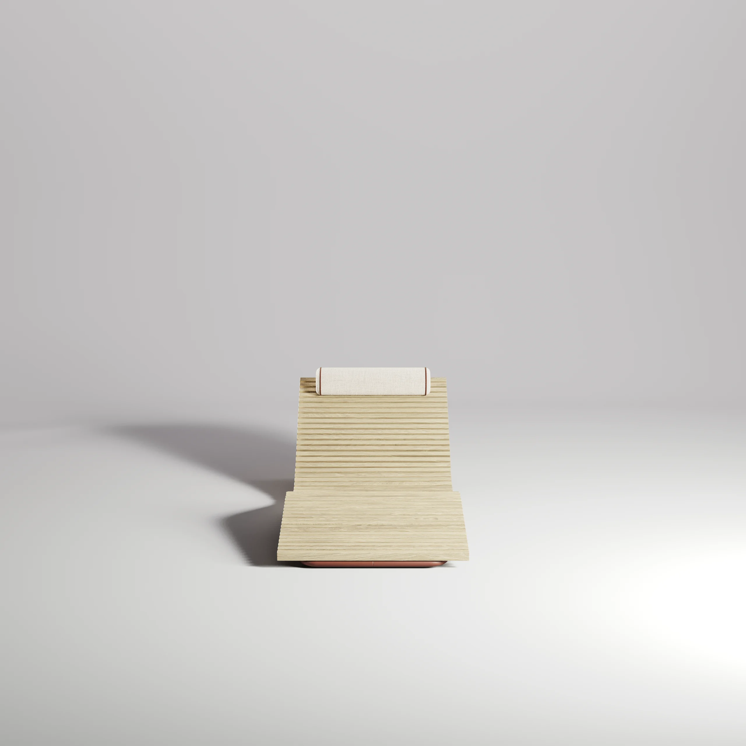 Tubería metálica color jitomate + madera natural + cojin en tela monaco y ribete en habanna