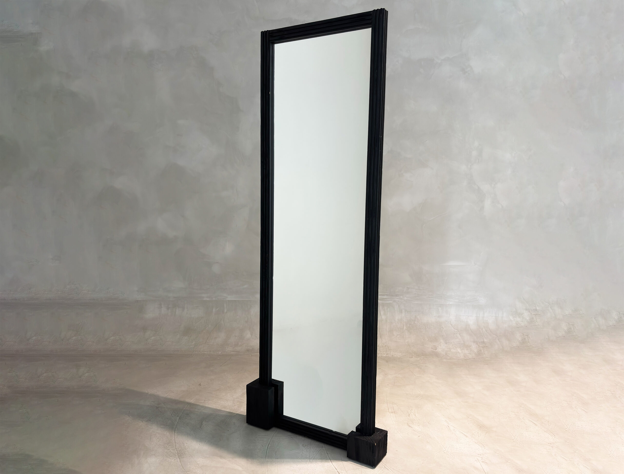 Estructura en madera natural grateada con acabado en pintura poliuretano + espejo