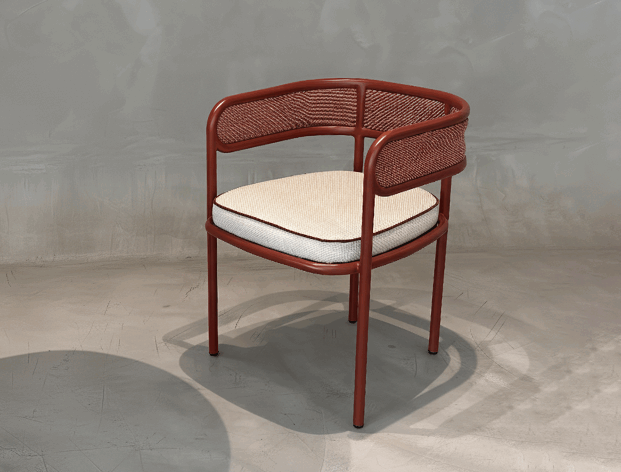 Tubería metálica color Jitomate + telar el espaldar + tela mónaco + ribete en habanna
