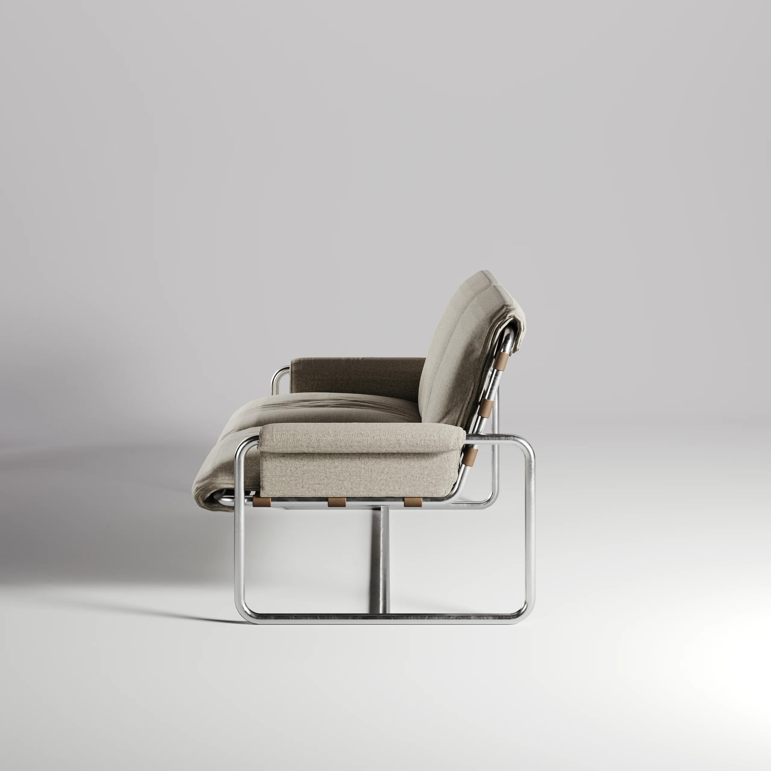 Pata en acero inoxidable + correas en cuero + superficie en piedra natural